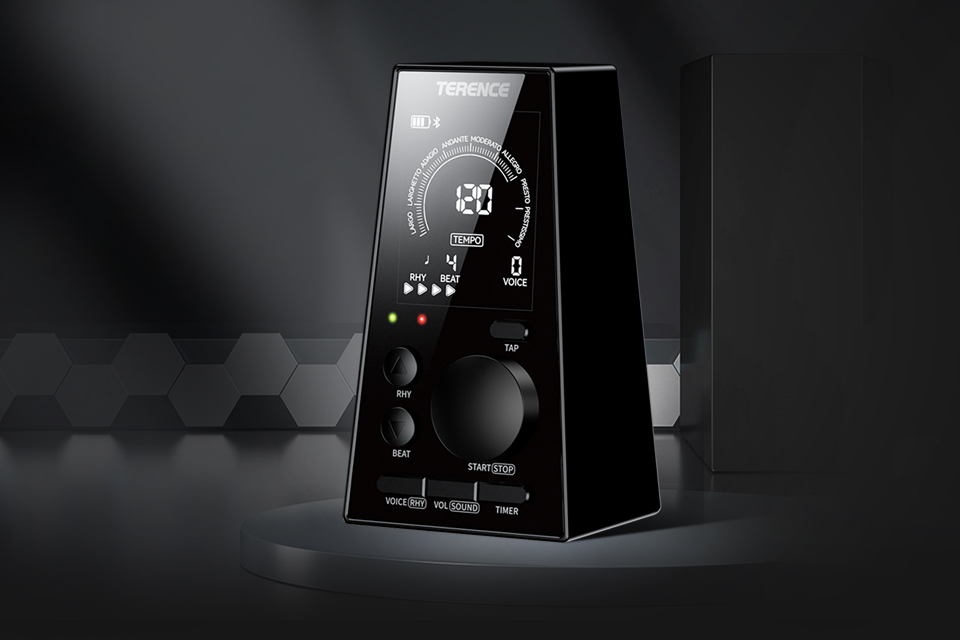 可視化設計告別傳統擺錘數拍,實時展示,直觀地顯示速度、拍子以及其他參數,方便調整和查看,還配備了節拍指示燈。
