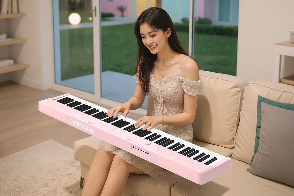 仿象牙質感的鋼琴鍵盤,更接近傳統鋼琴的觸感,模擬鋼琴的下鍵深度、更高靈敏度的鍵盤反饋,彈奏時能表現出細致的強與弱,更接近真實鋼琴演奏感;每一次力度調整,都能清晰感知旋律變化。